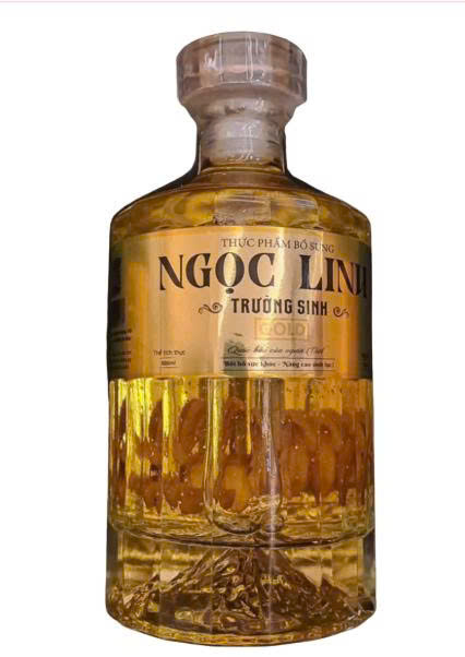 + Ánh kim lấp lánh: Bên trong chất rượu vàng óng đặc trưng của sâm Ngọc Linh là những vảy vàng 24K thực phẩm siêu mỏng. Khi lắc nhẹ, các vảy vàng xoay vần, tạo nên một vũ điệu ánh sáng rực rỡ và huyền ảo.