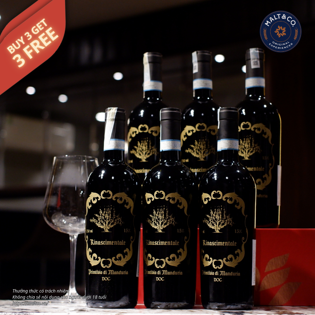 Rinascimentale Primitivo di Manduria DOC là chai vang đỏ tiêu biểu cho phong cách Primitivo miền Nam nước Ý: mạnh mẽ, đậm đà, dễ gây ấn tượng ngay từ ngụm đầu tiên. Với nồng độ cao, hương vị rõ ràng và xuất xứ DOC uy tín, đây là lựa chọn rất tốt trong phân khúc vang Ý cao cấp, phù hợp cả thưởng thức cá nhân lẫn làm quà biếu.